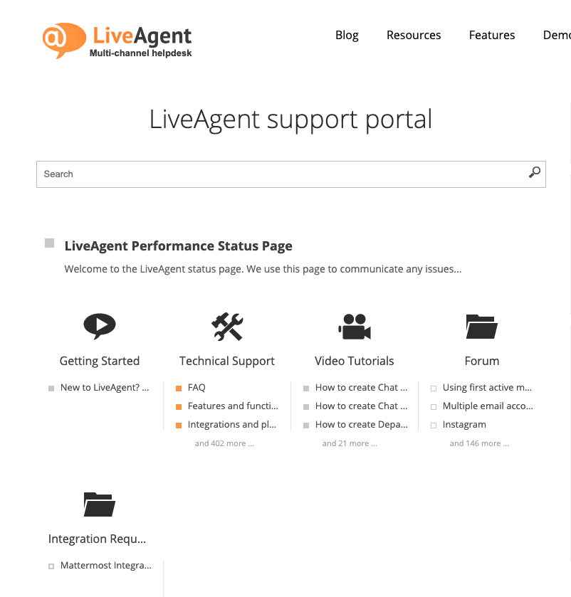 LiveAgent biedt een verscheidenheid aan functies om bedrijven te helpen contact te leggen met klanten. Het biedt ook een uitgebreide bibliotheek met bronnen voor zijn klanten. Deze bronnen omvatten blogberichten, sjablonen, woordenlijsten, typetests, een WordPress-plug-in, mappen, webinars, een academie en nog veel meer.