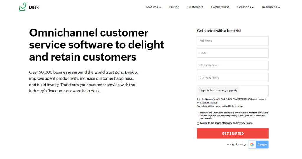 Zoho Desk ondersteunt klantenserviceteams en verkopers als software voor klantenervaring. Het biedt ook een boekingsplatform om klanten te helpen bij het maken van afspraken.