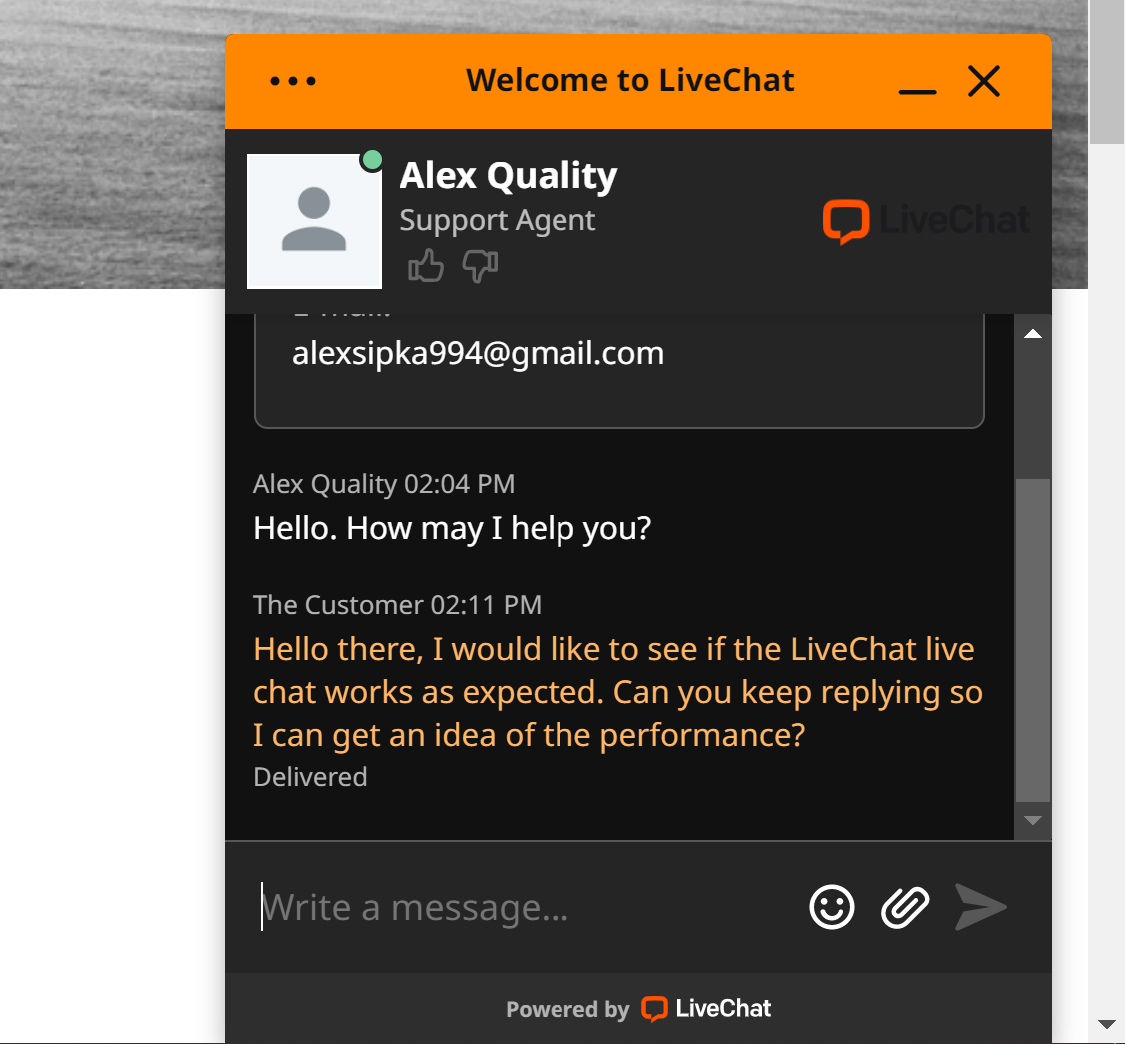 Over het algemeen zijn de prestaties van de live chatwidget LiveChat geweldig en ik heb absoluut geen klachten. Ik ondervond geen problemen met de snelheid en er waren ook geen bugs of problemen. De widget van LiveChat is een sterkere concurrent als het gaat om prestaties.