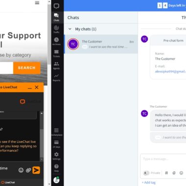 De meeste andere functies zijn passief, wat betekent dat ze automatisch worden geactiveerd en dat u niets met de configuratie hoeft te doen. Ze zijn vanaf het begin klaar. U kunt echter altijd dieper gaan met instellingen zoals routering, chattoewijzingen, het delen van bestanden en nog veel meer. Alles is gemakkelijk bereikbaar. Navigeren door de interface, het opzetten van de livechat en de algemene gebruikerservaring zijn best goed, ik had absoluut geen problemen met taken. Nu de hele setup klaar is voor gebruik, is het tijd om te kijken naar de prestaties en ervaring van het werken met LiveChat live chat.