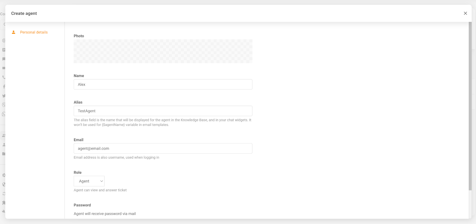 Het eerste wat je moet doen voordat je begint met het instellen van de gamification-functies is om nieuwe vertegenwoordigers toe te voegen aan het LiveAgent-account. Dit kun je eenvoudig doen door de handleiding te volgen, die de optie bevat om nieuwe gebruikers toe te voegen. Als alternatief kun je naar de Instellingen gaan en de sectie Agenten vinden. Dit proces omvat het toevoegen van de naam van de vertegenwoordiger, profielfoto, alias, email en agentrol. Wanneer je klaar bent, zal LiveAgent een email met inloggegevens sturen naar het emailadres van de nieuwe vertegenwoordiger.