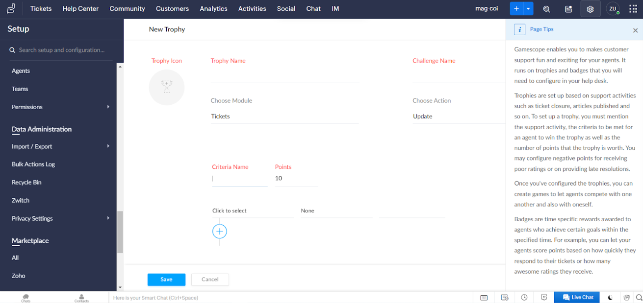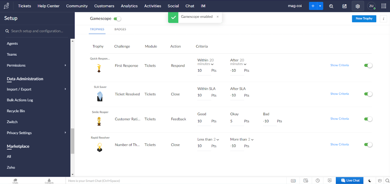 Gamification functies in Zoho Desk